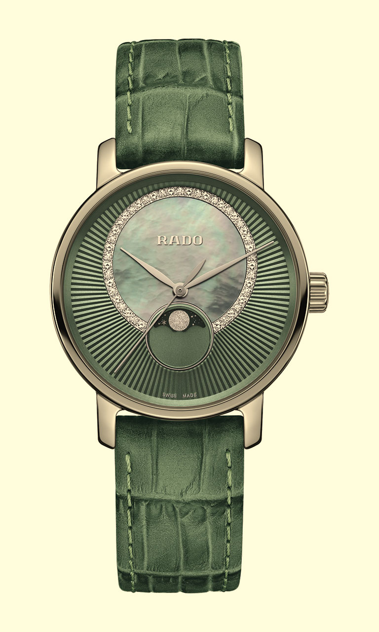 В дополнение к моделям из материала Ceramos в коллекции DiaMaster от Rado представлены новые женские часы DiaMaster Moonphase. Их корпус выполнен из инновационной плазменной высокотехнологичной керамики, которая дополняет разнообразные цвета моделей DiaMaster.