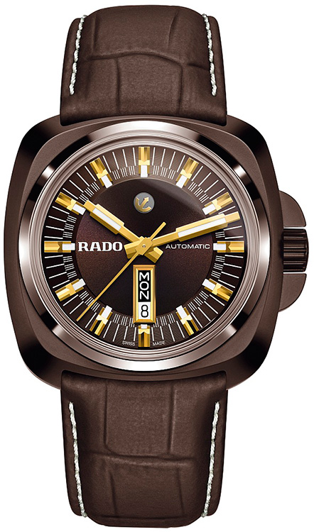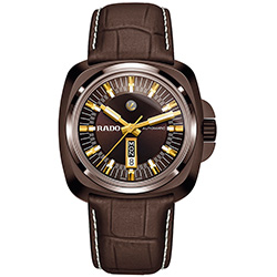 3. Rado HyperChrome 1616 Ceramic Brown Limited Edition 764.0170.3.130 Корпус из матовой и полированной высокотехнологичной керамики шоколадно-коричневого цвета. Шоколадно-коричневый циферблат с центральными стрелками, условными часовыми индексами, указателем дня недели / даты и декоративным якорем с жёлто-золотым PVD-покрытием. Ремешок из натуральной кожи шоколадно-коричневого цвета с тиснёным рисунком под крокодиловую кожу и раскладной титановой застёжкой с керамическим напылением шоколадно-коричневого цвета. |