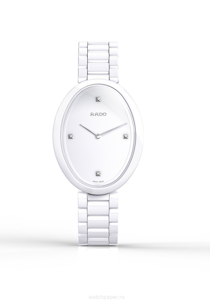 Пожалуй, впервые в этом году мужчины искренне завидовали женской части поклонников RADO. Новая модель Esenza Ceramic Touch в очередной раз доказала, что RADO – новатор и всегда на шаг впереди. Первые часы с сенсорной коррекцией индикаторов времени тут же прозвали часовым iPhone. Сходство усиливает то, что создано по три версии часов в корпусе как из черной, так и из белой керамики. Заводной головки на данной модели нет, а управляются механизм последовательными нажатием и движением пальца по одной из сторон корпуса – поглаживанием «бочков». Подержав пару секунд палец на отметке 8 часов вы оживляете сенсорный механизм, а затем, поглаживая левый бок, корректируете положение часовой стрелки, которая прыгает с шагом в один час. Касаясь правого бока, можно менять положение минутной стрелки. Прекрасно понимая, что владельцу RADO Esenza Touch захочется часто демонстрировать свою сенсорную диковину, создатели оснастили модель особо мощной батарейкой, которая имеет запас автономности 4 года (если по бокам гладить не очень часто). Отсутствие заводной коронки не только не уменьшает привлекательности Esenza Ceramic Touch, но и позволяет сохранять идеальный маникюр. А довершением радости стал полностью керамический браслет, который впервые используется в данной модели.