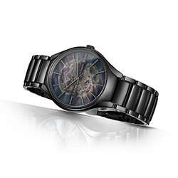 1. Rado True Open Heart (Black) Limited Edition, 734.0101.3.090 Корпус-моноблок из чёрной матовой высокотехнологичной керамики. Титановая задняя крышка с PVD-покрытием чёрного цвета. Полупрозрачный скелетонированный циферблат из чёрного перламутра, чёрные стрелки и условные индексы. Браслет из чёрной матовой высокотехнологичной керамики. |