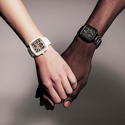 Элементы золотого цвета и сверкающие бриллианты в белом исполнении или блестящие акценты цвета розового золота в сочетании с черной высокотехнологичной керамикой делают настоящее квадратное открытое сердце по–настоящему привлекательным – как для нее, так и для него. Носимые вместе, они являются живым напоминанием о моментах, которые делают историю любви такой запоминающейся.