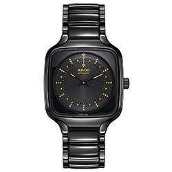 - С внутренней стороны нанесены металлизированные логотипы цвета желтого золота Rado, Automatic и Swiss Made.