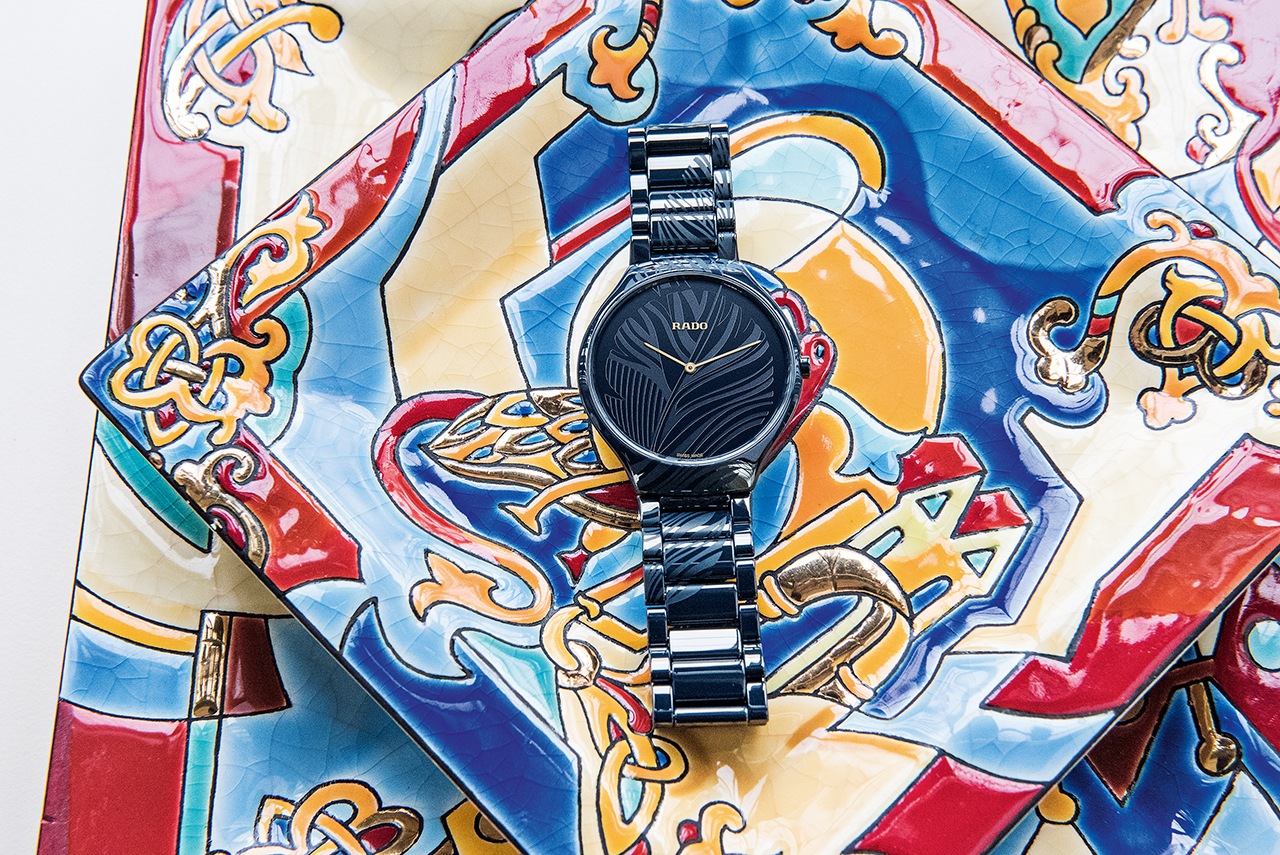 Символизм, следование традициям и цвет — отличительные черты работ Евгении Миро. В своих знаковых работах она использует символы и мотивы, чья история уходит корнями в древние века, и сочетает их с самыми разнообразными материалами для создания долговечных произведений искусства. Обладая огромным опытом в работе по росписи шелка и тончайшего фарфора, Евгения применила свое мастерство в новом проекте с необычным для себя материалом, где огромную роль играют микроразмеры. Художник создала дизайн часов в сотрудничестве с ведущим швейцарским часовым брендом Rado.