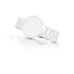 - Заводная головка из полированной высокотехнологичной керамики теплого белого цвета.