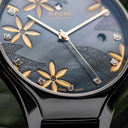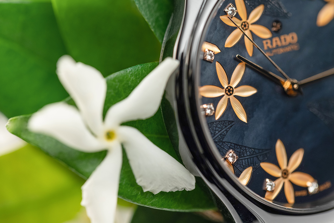 Когда компания Rado начала свое сотрудничество с Grandi Giardini Italiani в 2017 году, перед ней предстала возможность соединить дизайн и красоту природы, которая воплотилась в том же году в коллекцию Rado True Thinline Nature. Сегодня, спустя несколько лет, Rado создает новую коллекцию из трех моделей в исключительном дизайне и из футуристичных материалов. Новая линия часов Rado True x Great Gardens of the World, вне всяких сомнений, является воплощением утонченности и гармонии. В основе коллекции два элемента: жасмин как символ позитива и чувственности и дуб как символ силы, благородства и знаний.