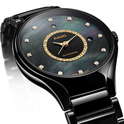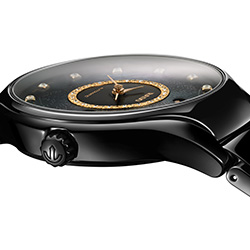 - Заводная головка из полированной высокотехнологичной керамики черного цвета.