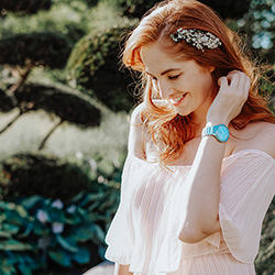 - Заводная головка из полированной высокотехнологичной керамики бирюзового цвета.