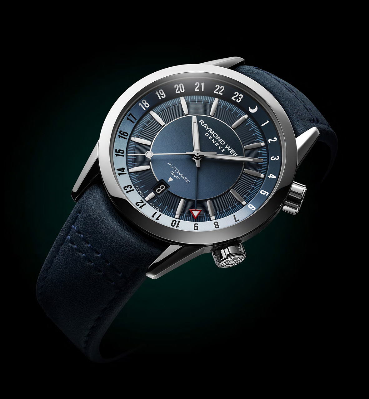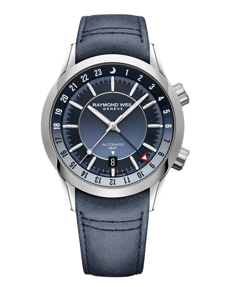 Компания RAYMOND WEIL представляет новые часы Freelancer GMT 2761. Эта новая модель, способная одновременно показывать местное и домашнее время, станет идеальным спутником в путешествии. Часы заключены в прекрасно сбалансированный по пропорциям корпусе диаметром 40,5 мм и наделены тонким профилем, обеспечивающим превосходную эргономичную посадку на запястье. И наконец, использование переливающихся оттенков синего делает эти часы завораживающими.