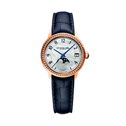 Коллекция Maestro от RAYMOND WEIL, впервые представленная в 2010 году, воспевает виртуозность швейцарского часового мастерства и благородство классической музыки. Эти механические часы с автоподзаводом, изготовленные с соблюдением швейцарских часовых традиций, оснащены индикатором фаз Луны в положении «на 6 часов» и 38-часовым запасом хода.