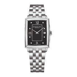 • Женские кварцевые часы с черным циферблатом и бриллиантами