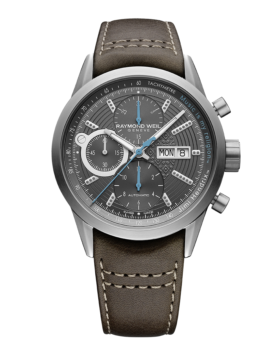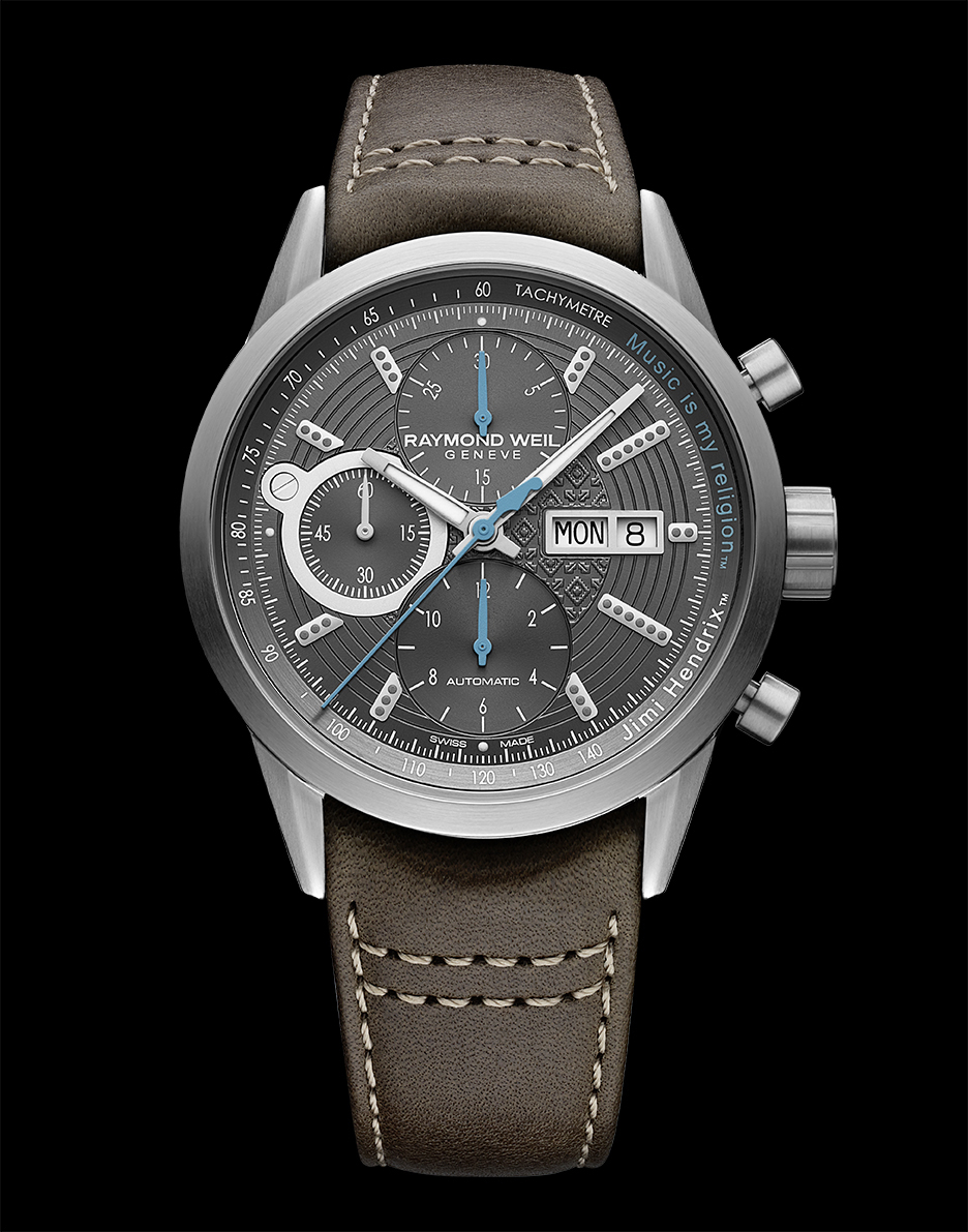 В часах, созданных в Женеве мастерами RAYMOND WEIL, сохранен типичный для коллекции freelancer дизайн корпуса с матовой отделкой, оригинальные кнопки хронографа и классический ремешок из коричневой кожи. На кольцо тахиметра нанесено знаменитое изречение певца «Music is my Religion» и его имя. Задняя крышка украшена подлинным логотипом Hendrix в знак одобрения со стороны этого семейного бренда. «Для нас было честью работать над дизайном коллекционной модели вместе с RAYMOND WEIL. Эти часы отличаются безупречным качеством и красотой. Они создают ощущение, что Джими и его музыка неподвластны времени, — говорит Джейни Хендрикс, сестра Джими Хендрикса, президент и генеральный директор Experience Hendrix L.L.C. — Благодаря этим часам Джими продолжает дарить нам свое чувство времени».