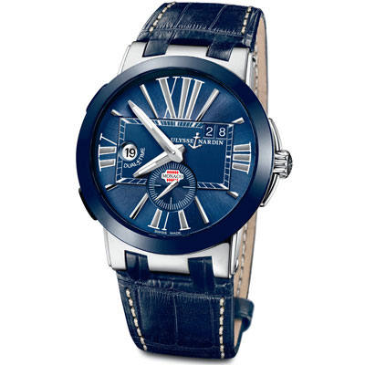 Классическое исполнение часов «Executive Dual Time» прекрасно подходит современному яхтсмену: сапфировое стекло с антибликовым покрытием, увеличенные римские цифры, крупное окошко «большой даты». Но самая главная деталь – знаменитый автоматический калибр UN-24 с частотой работы баланса 28 800 пк/час, 42-часовым запасом хода, с функцией достаточно быстрой коррекции второго часового пояса. Рант и кнопки переключения второго часового пояса, изготовленные из высокопрочной керамики, расположены у отметок «8» и «10» часов. Водонепроницаемость стального 43 мм корпуса составляет 100 метров.