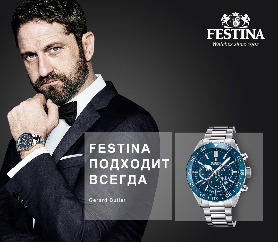 В мире бренд Festina стал звучать благодаря партнерству с известными амбассадорами. Так, мужскую коллекцию много лет представляет выдающийся голливудский актер Джерард Батлер, а лицом женской является победительница конкурса Мисс Франция, и в 2024 году ей стала очаровательная Ева Жиль.