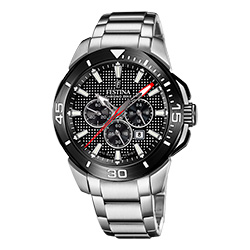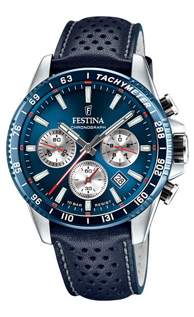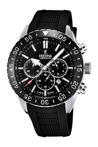 - Быстрое внедрение инноваций. Благодаря собственным дизайнерским бюро и производственным площадкам компания регулярно выпускает новые коллекции. Среди инновационных решений Festina – коллекция Ceramiс. В нее вошли хронографы диаметром 40 мм с керамическим безелем с синими или черными деталями.