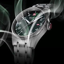 Коллекция не зря названа Thunderbolt – «Молния». Thunderbolt – яркие, как молния, авиаторские часы со всеми характерными атрибутами: сатинированный стальной корпус диаметром 43 мм, арабские цифры на часовых метках и мечевидные стрелки с люминесцентным составом на новом оливковом циферблате (зеленый цвет в тренде последние три года), рифленый стальной безель и удобная заводная головка в форме луковицы. Швейцарский флаг на отметке «12 часов» и красное окошко даты – фирменный стиль Swiss Military Hanowa. Браслет из сатинированных и полированных звеньев дополняет ансамбль, усиливая и без того харизматичную модель. Абсолютно универсальные часы под любой стиль.