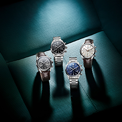 Версии с черным и синим циферблатом дополняет H-образный браслет из нержавеющей стали. Закругленные углы внутренних и наружных звеньев придают хронографу утонченный вид и обеспечивают особый комфорт при ношении. Двухцветная модель с серебристым циферблатом и стрелками с покрытием из розового золота, а также версия с темно-серым циферблатом представлены в комплекте с ремешком из кожи аллигатора благородного коричневого цвета. Сапфировое стекло на задней крышке корпуса с винтовым креплением позволяет наблюдать за работой уникального инновационного механизма с ротором цвета розового золота.
