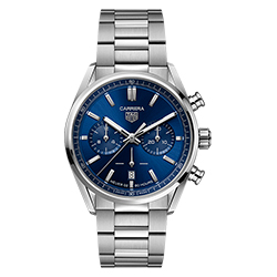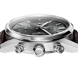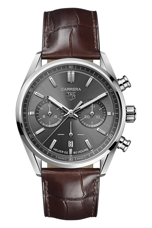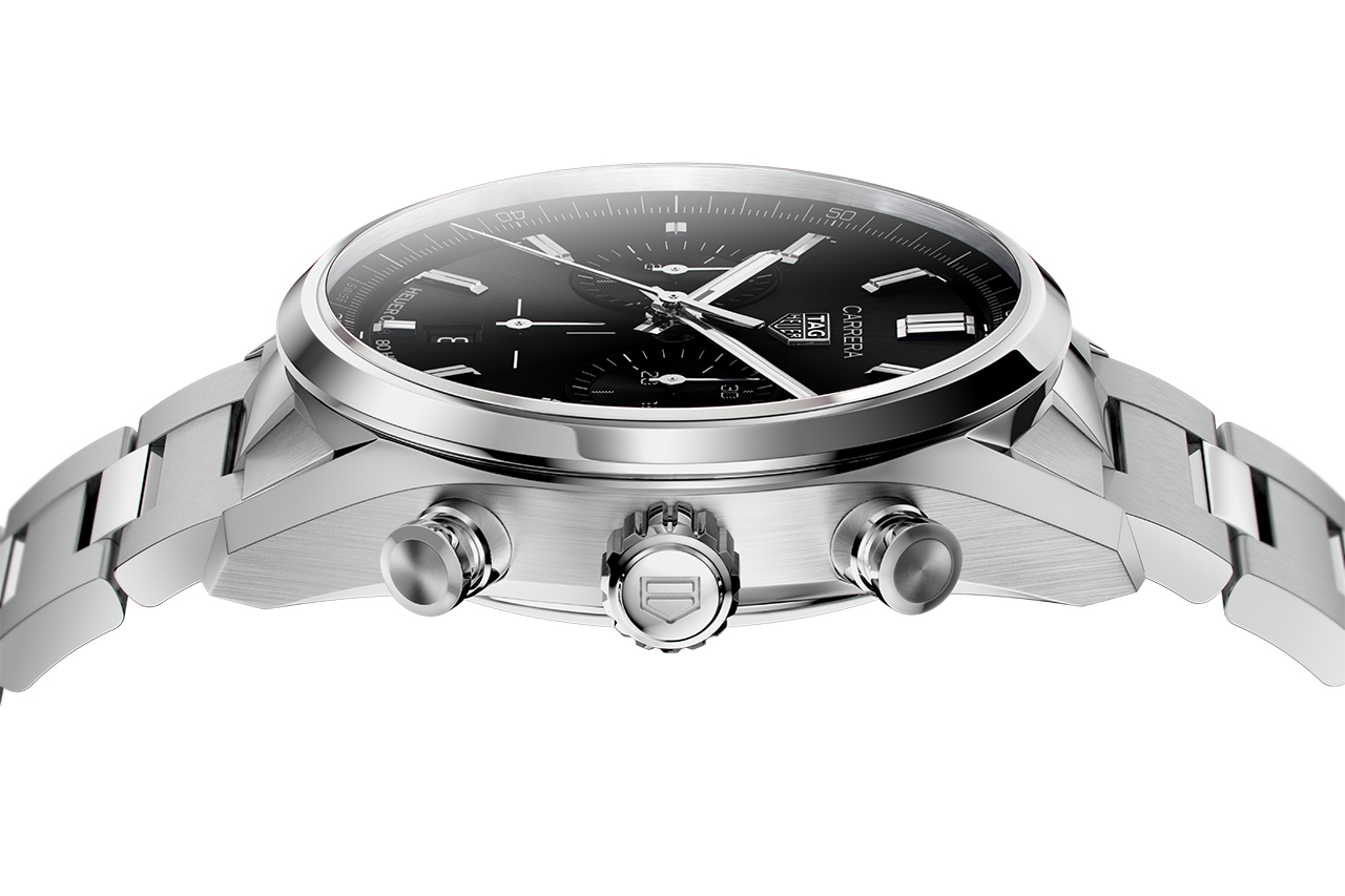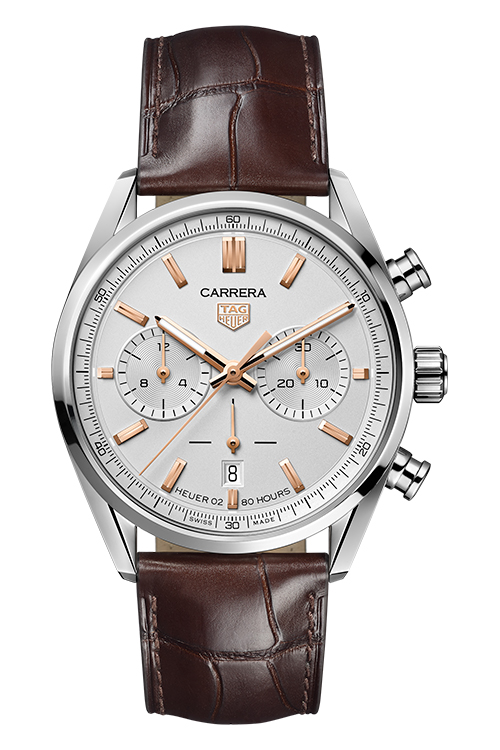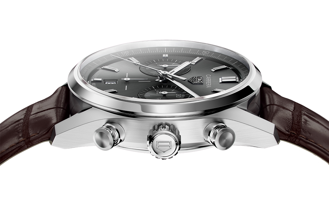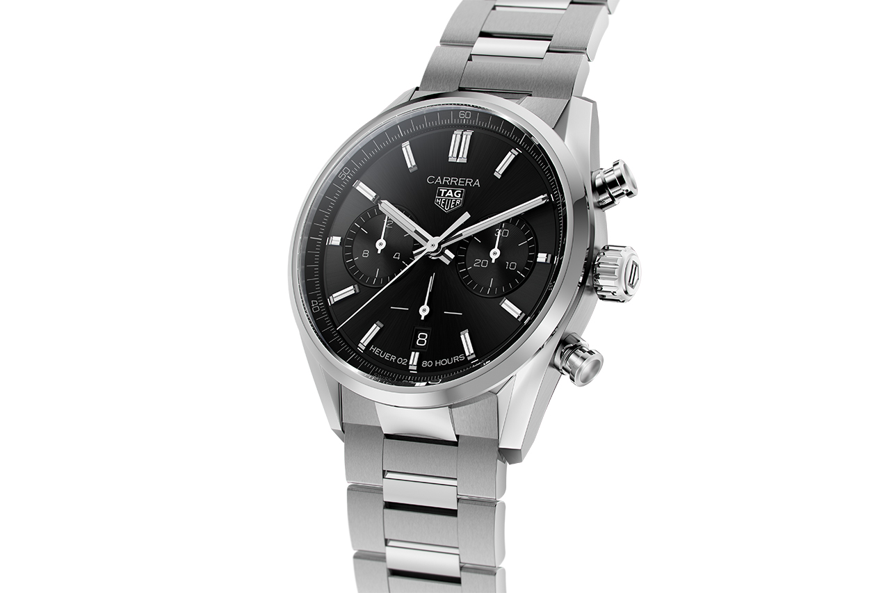 Изысканность новой версии TAG Heuer Carrera подчеркивает лаконичный безель из нержавеющей стали. У него отсутствует тахиметрическая шкала, чтобы передать эстетику легендарных Heuer Carrera с серебристым циферблатом, которые впервые выпущены в 1963 году. Корпус часов диаметром 42 мм оснащен кнопками и дополнительными счетчиками на циферблате – свидетельство того, что новые часы обладают функцией хронографа. Независимо от цветового решения циферблата (он может быть в матово-черном или синем, темно-сером либо серебристом цвете с эффектом sunray) в положениях «3 часа» и «9 часов» расположены дополнительные счетчики, декорированные в технике azurage. Над небольшим окошком даты в положении «6 часов» установлен малый постоянный счетчик секунд. Пульсирующим сердцем этого классического хронографа TAG Heuer Carrera стал фирменный механизм Calibre Heuer 02.