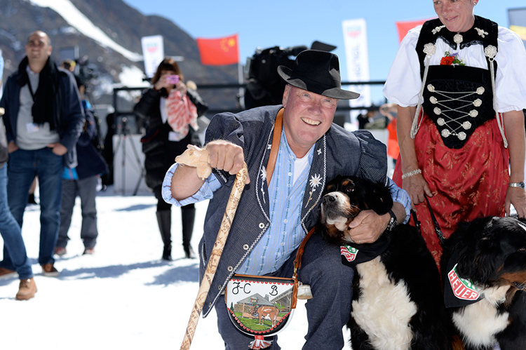 Уникальное выступление китайской звезды сопровождалось присутствием знаменитых швейцарских символов и традиций: легендарных бернских горных собак (Berner Sennenhund), игры на альпийском горне, а также дегустации швейцарского сыра, который приготовил сам Жан-Клод Бивер.