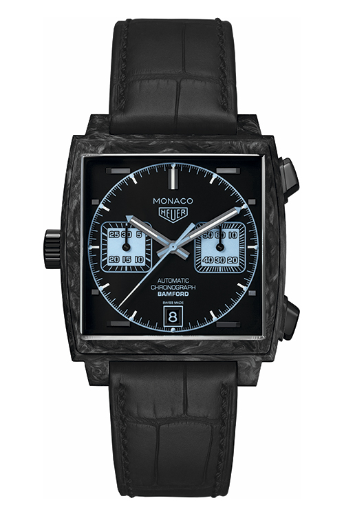 Характерный почерк Джорджа Бамфорда нашел свое воплощение в легендарной модели TAG Heuer Monaco Bamford, названной в честь него. Несмотря на свежее прочтение, новая версия часов сохранила оригинальные черты: квадратный 39-миллиметровый циферблат и расположенную слева заводную головку. Корпус обновленной модели выполнен из очень легкого материала повышенной прочности – углеволокна. Этот материал идеален для производства часовых изделий.