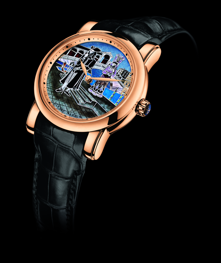 Новая коллекция минутных репетиров «Carnival of Venice» позволит своим будущим владельцам носить на руке частичку Венецианского карнавала, который будет периодически напоминать о себе двигающимися в такт музыке жакемарами.