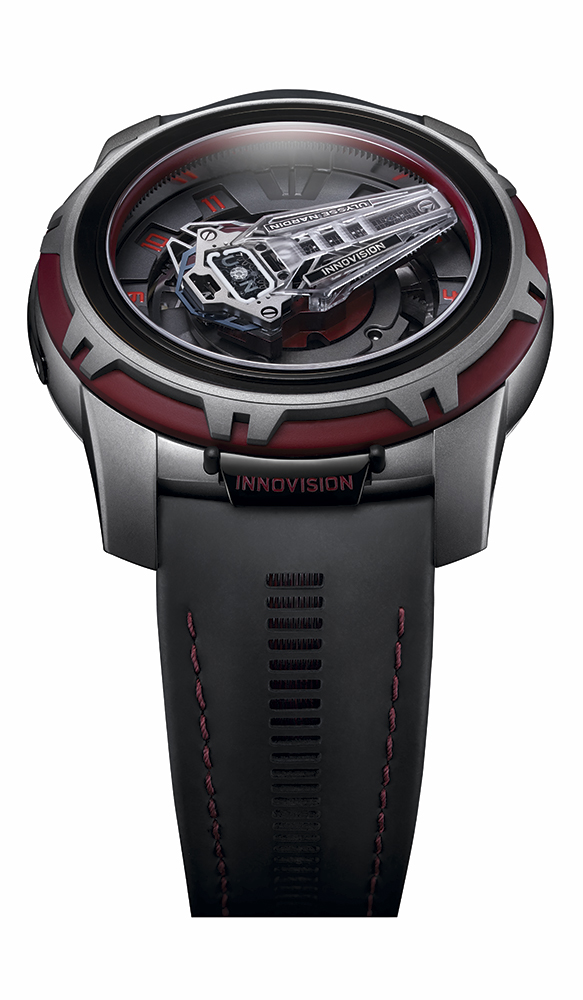 Наряду с уникальным электронным дисплеем концепция InnoVision 2 предполагает наличие минутной стрелки, не имеющей аналогов на рынке. Это трехмерная стеклянная стрелка вырезана прецизионным лазером, позволяющим добиться такой точности обработки, при которой допуски не выходят за пределы от трех до пяти микрон. Тонкая металлическая пластина служит основой для хрупкого стекла и придает стрелке необходимую прочность даже при очень сильных ударах.