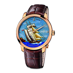Новые часы «Ulysse Nardin Pride of Baltimore Сlassico» – это своеобразный приветственный победный салют в честь «Гордости Балтимора». Они представляют собой ни с чем неповторимый синтез швейцарского часового мастерства и искусства декорирования эмалью. Часы выпущены ограниченной серией в количестве всего 30 экземпляров. К ним прилагается ремешок из кожи аллигатора с классической застёжкой.